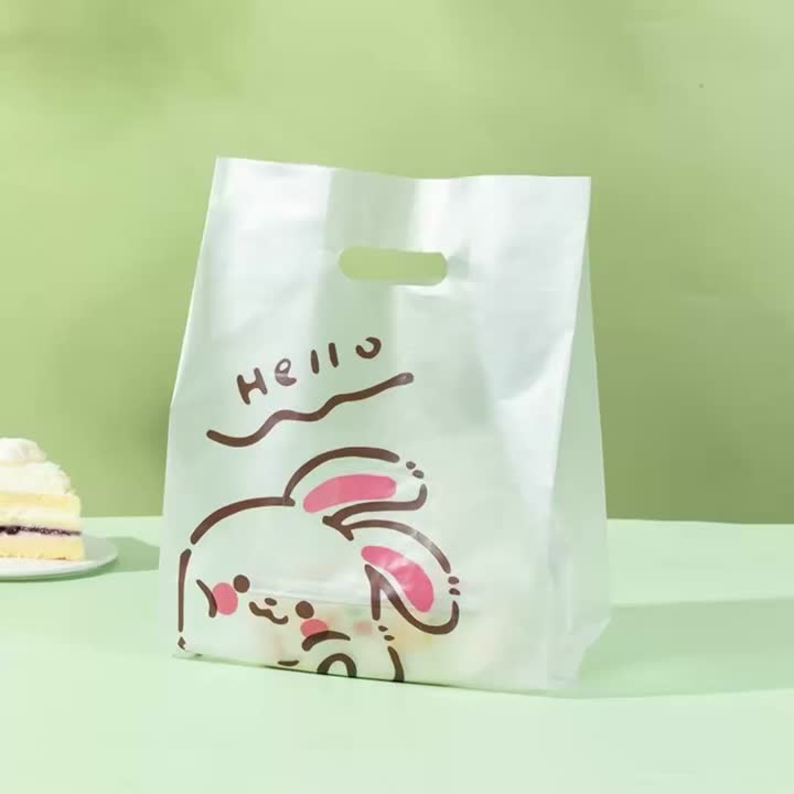 Notre joli sac à gâteau en plastique en forme de lapin de dessin animé est une solution d'emballage dynamique et fiable, conçue pour transporter des boîtes à gâteaux, des cupcakes et des pâtisseries en toute sécurité tout en améliorant la présentation. Fabriqué à partir de polyéthylène solide et indéchirable, il protège les desserts emballés de la poussière, de l'humidité et des chocs mineurs, préservant ainsi l'intégrité de vos produits pendant le transport ou la livraison. Le joyeux dessin de lapin ajoute une esthétique ludique et charmante, attirant les enfants, les familles et tous ceux qui recherchent une présentation visuellement attrayante, ce qui le rend idéal pour les événements sur le thème de Pâques, les promotions de printemps ou les emballages de boulangerie-pâtisserie. Sa conception à poignée carrée assure un transport confortable, même avec des boîtes à gâteaux plus lourdes ou à plusieurs niveaux, et le matériau renforcé empêche les déchirures ou les dommages accidentels. Les parties semi-transparentes du sac permettent une vue subtile du gâteau à l'intérieur, alliant anticipation et attrait. Léger mais durable, il simplifie la manipulation, l'empilage et la distribution dans les contextes de vente au détail, de livraison et d'emballage cadeau. Entièrement recyclable et respectueux de l'environnement, le joli sac à gâteau en forme de lapin de dessin animé équilibre l'attrait visuel, la commodité d'utilisation et la protection, offrant aux boulangeries et aux magasins de desserts une option d'emballage pratique et agréable qui renforce l'identité de la marque et la satisfaction du client. Sacs d'emballage ménagers, film de stockage des aliments, film alimentaire, film étirable durable, solutions d'emballage de cuisine.