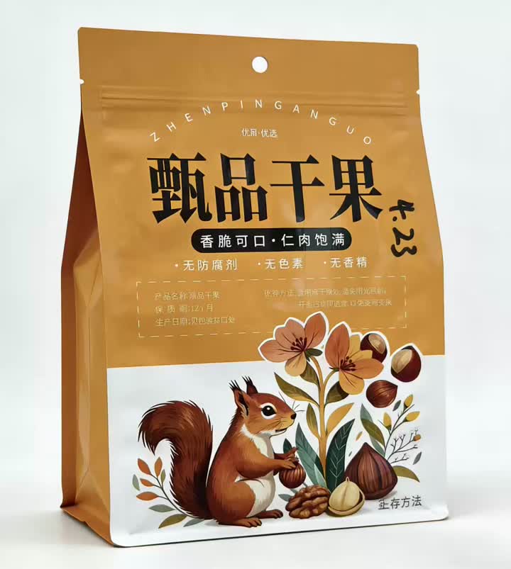Sac debout anti-oxydation avec fermeture à glissière et languette de suspension pour noix et fruits secs